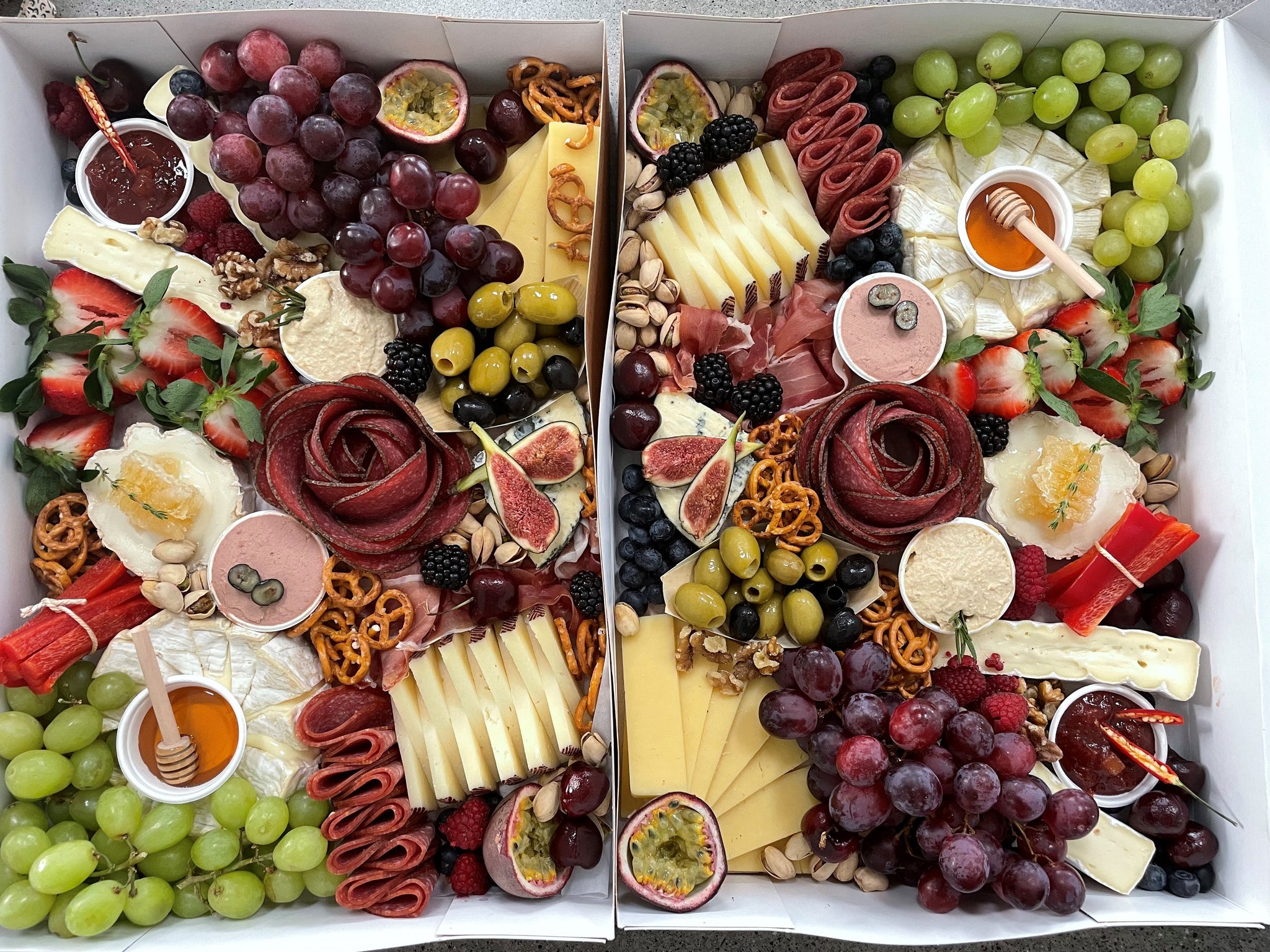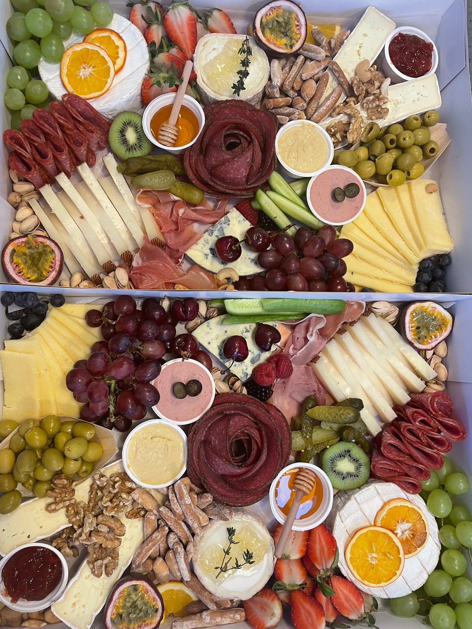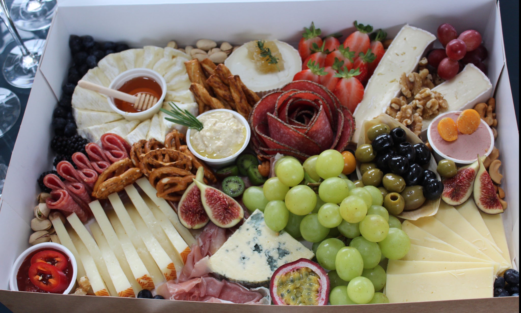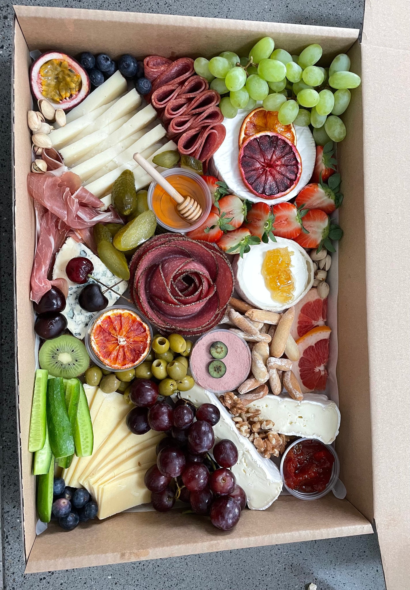 Also includes lots of seasonal fresh fruit, olives, nuts and dried fruit.