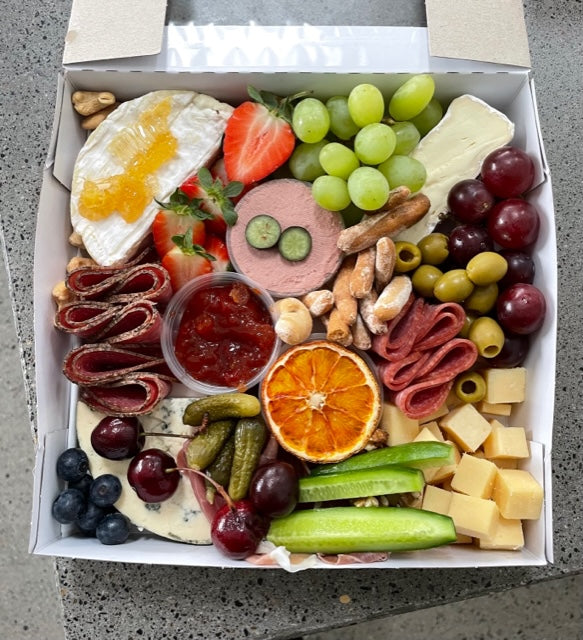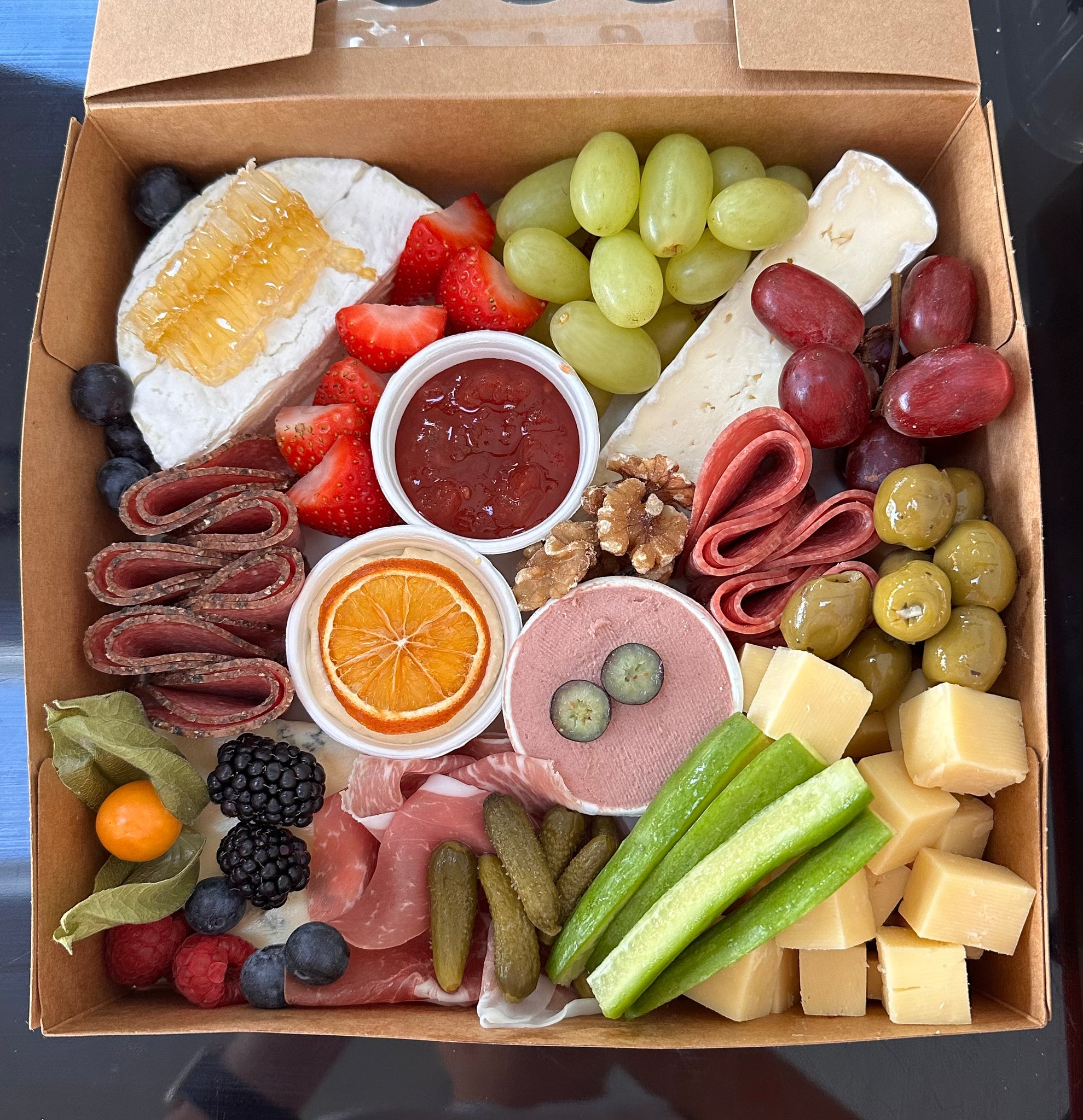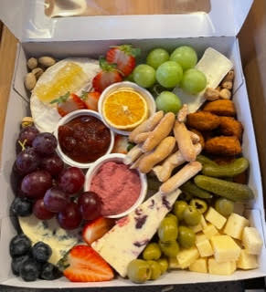 Also includes lots of fresh fruit, olives, nuts & dried fruit.